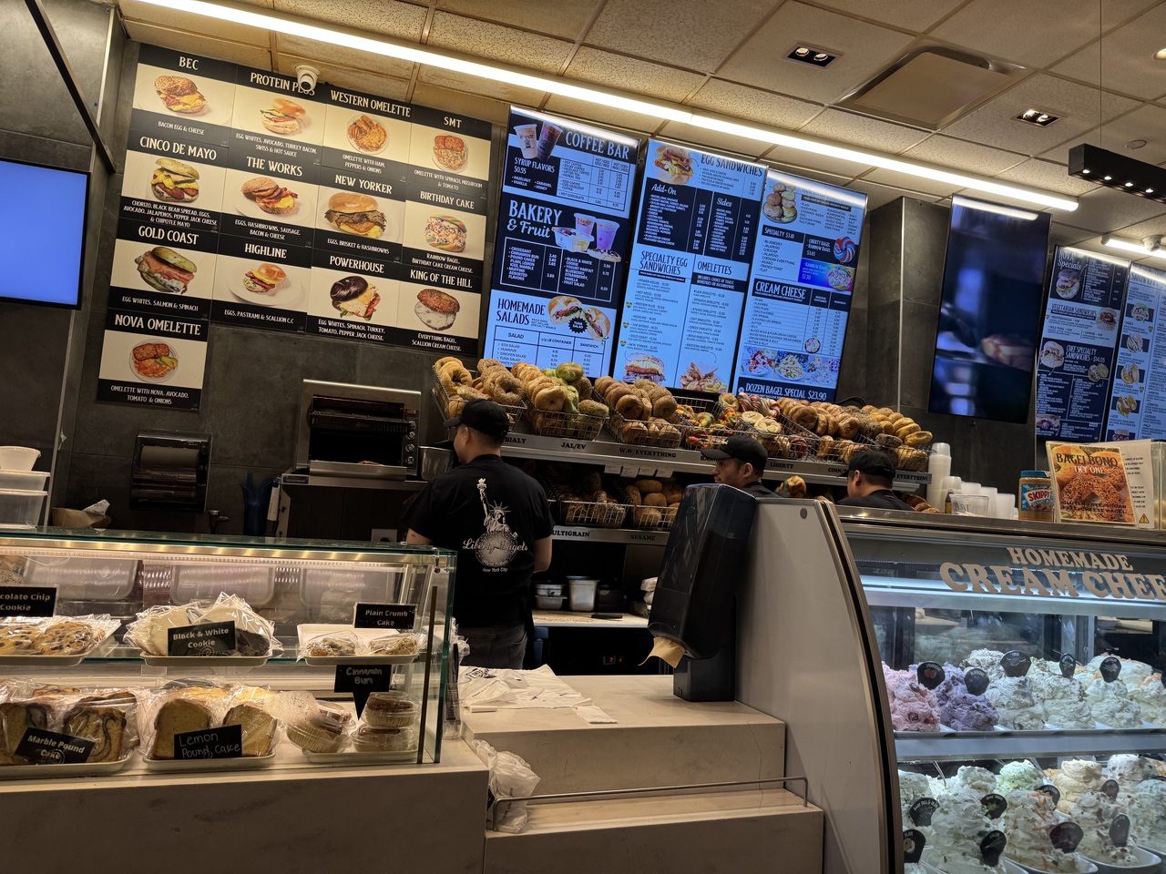 朝食にベーグルサンドが食べたくて9時に訪問。店内は長蛇の列でしたが回転は早い方だと思います。ベーグルのパンの種類はEverything、ゴマ等色々上に乗ってるもので、トーストすると香ばしいです。