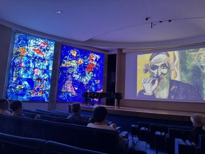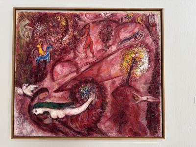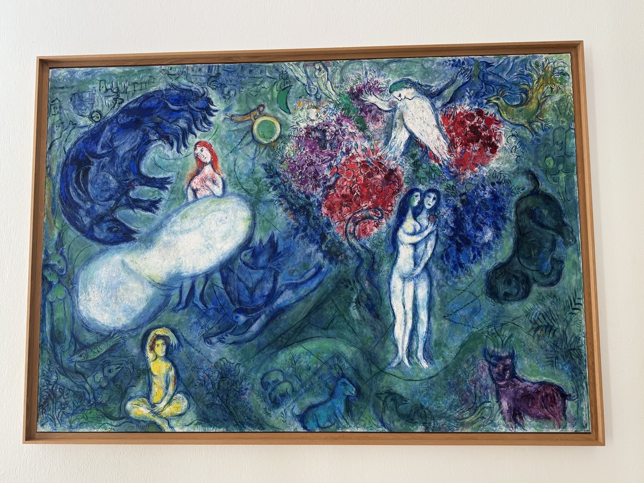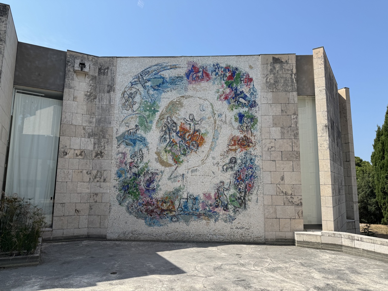 入口でセキュリティチェックがあり、ペットボトルの水は預けるシステムでした。平日の午前中に行きましたがそれほど混雑しておらずゆっくり楽しめました。シャガールの絵画はどれも見応えがあり、モザイク画とステンドグラスが特に素晴らしかったです。モザイクは石とガラスで作られていて、実物はキラキラ光りエリヤの戦車は圧巻です。美術館の庭にあるテラスのカフェでランチもできます。お庭も美しく気持ち良い場所でした。