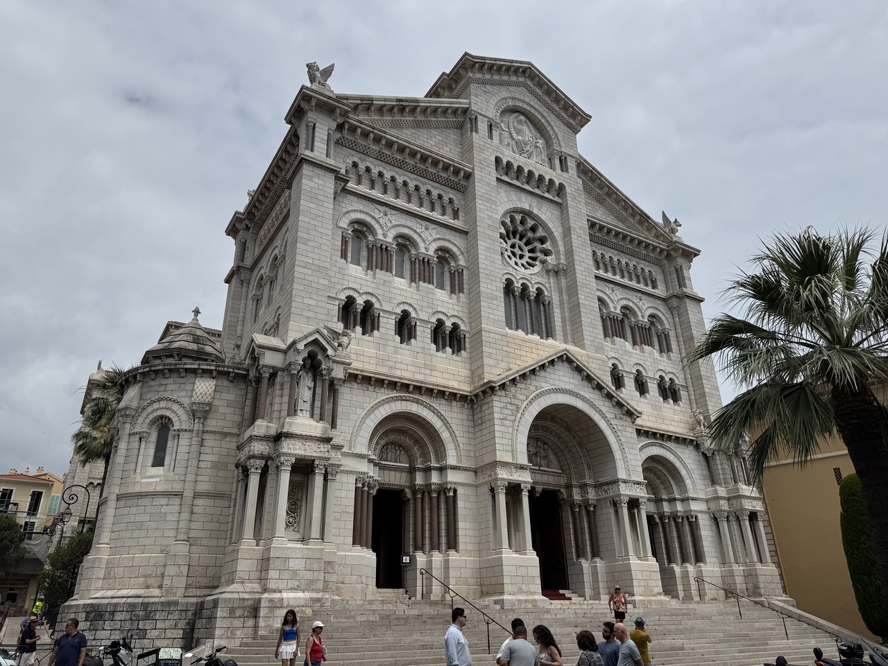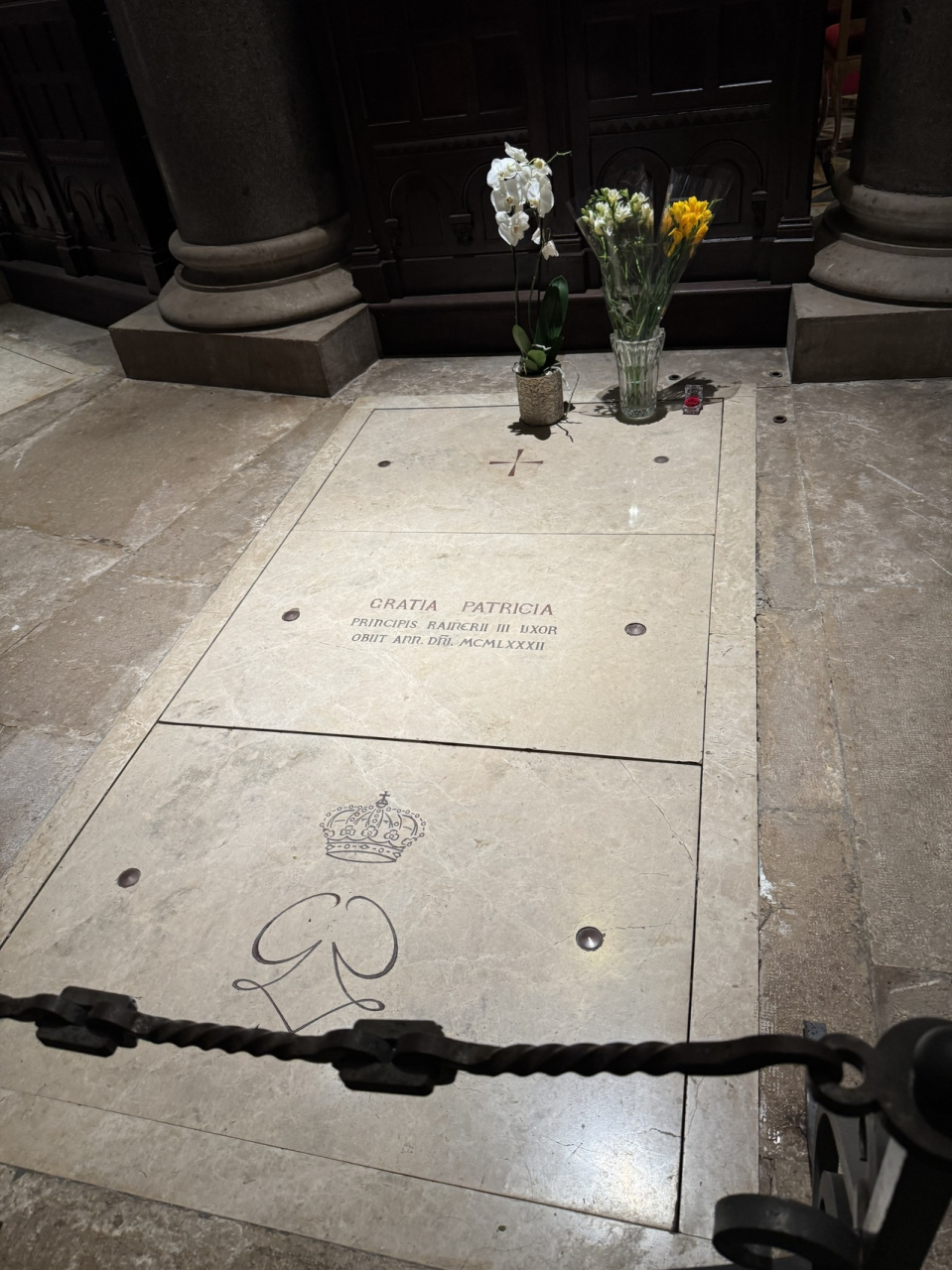 モナコ・ヴィル地区にあり、大公宮殿から近いです。グレース・ケリーが結婚式を挙げた場所として有名ですが、歴代君主の墓所でもあります。グレース公妃も眠っていて、大理石のお墓には小さなお花が飾られてました。内部も美しかったです。