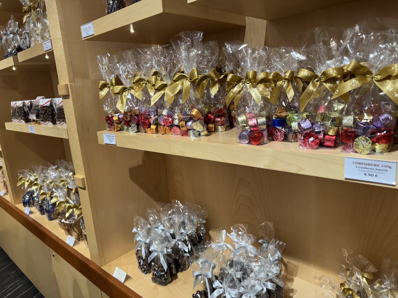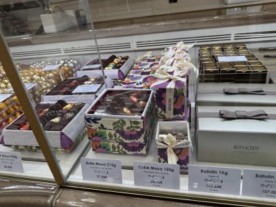 ニース在住ガイドがモナコでしか買えないオススメのチョコレートがあるとの事で訪問。オススメチョコは売り切れで購入できませんでしたが、チョコレートの種類は豊富でラッピングもステキでお土産に良さそうでした。店内は美しく、可愛いお店でした。