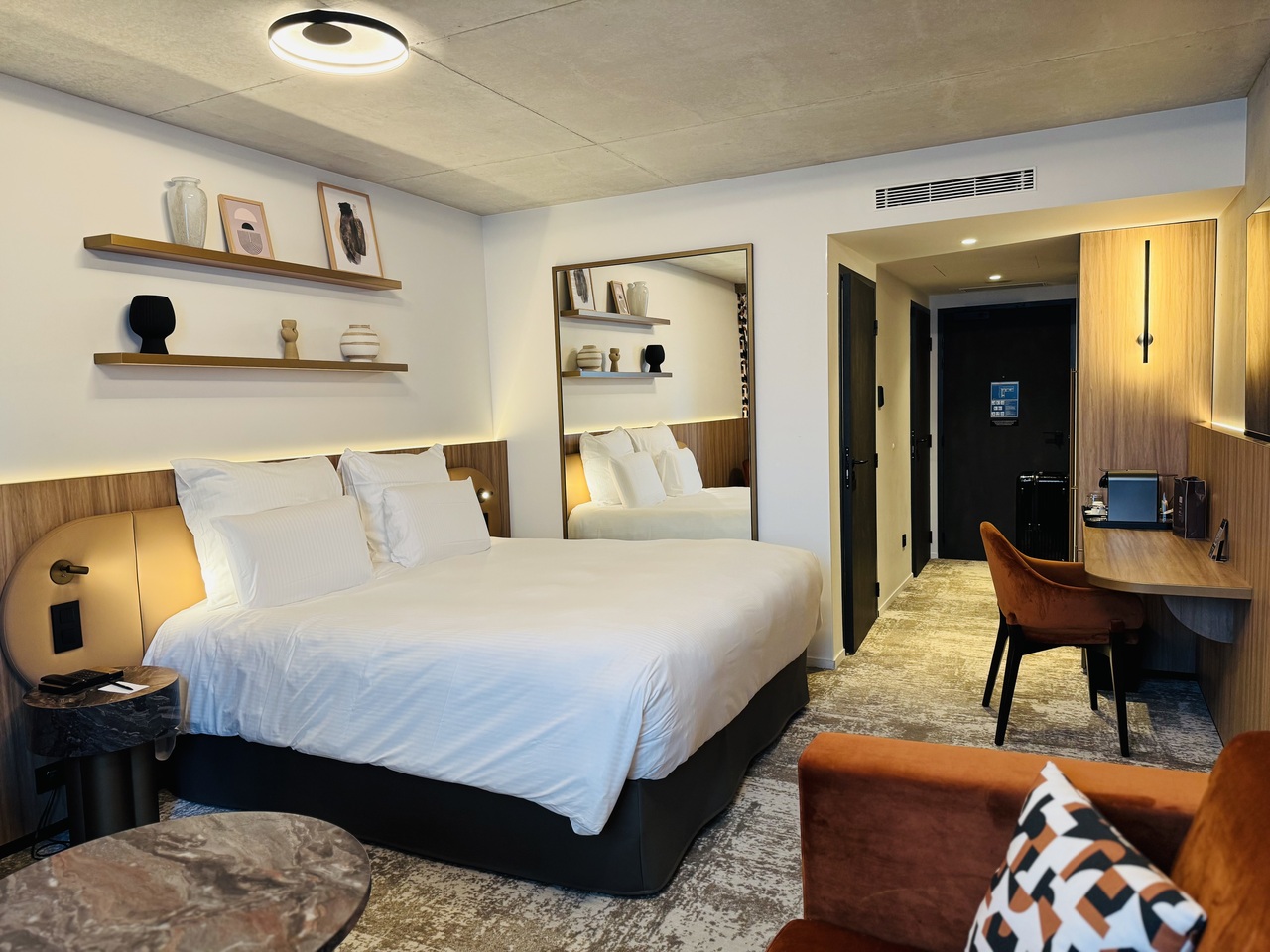 昨年、オープンして間もない時期に宿泊して以来、2度目の滞在。スタッフはフレンドリー、室内はきれいで清潔、シャンプー類はクラランス、必要なものは揃っています。リヨンパールデュー駅前工事は8割ほど完成で駅直結の道は階段が少しあります。スーツケースある時は迂回した方がベターです。朝食の種類はそれなりにあり美味しく、卵料理はオーダーすれば個別に作ってくれます。空港からのアクセスはトラムで簡単で、駅を挟んでホテルと反対側の大通りに到着します。駅の中を通れば直ぐで便利でした。