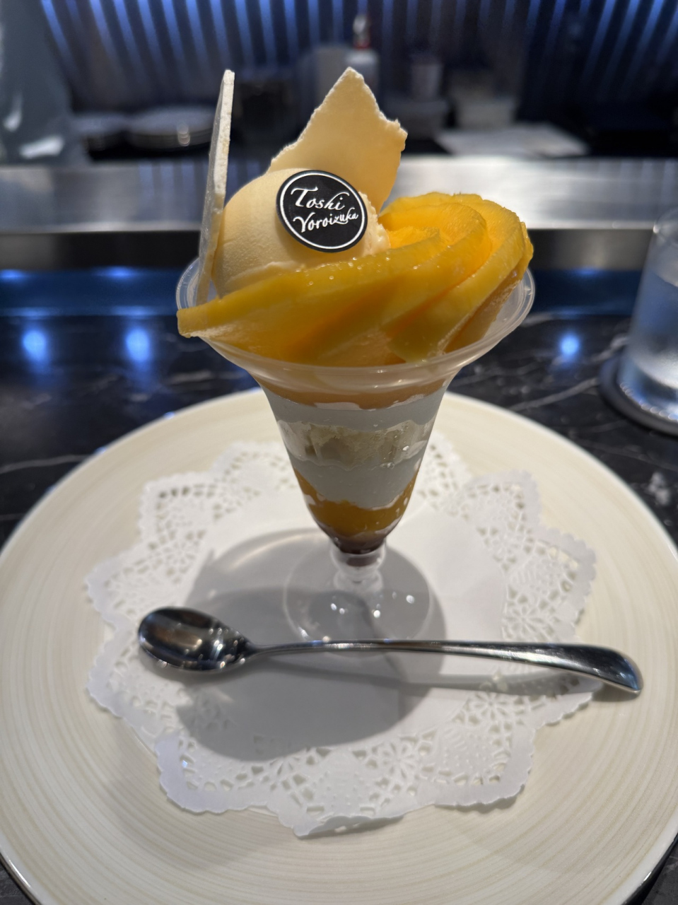 冷たいデザートが食べたくて訪問。期間限定のマンゴーパフェを注文。マンゴーはその場でカットしてくれフレッシュで甘くて最高でした。暑い日で冷房の効いた店内で食べたくてカウンターに座りましたが、パフェとは別途席料金が発生しました。パフェは美味しかったです。