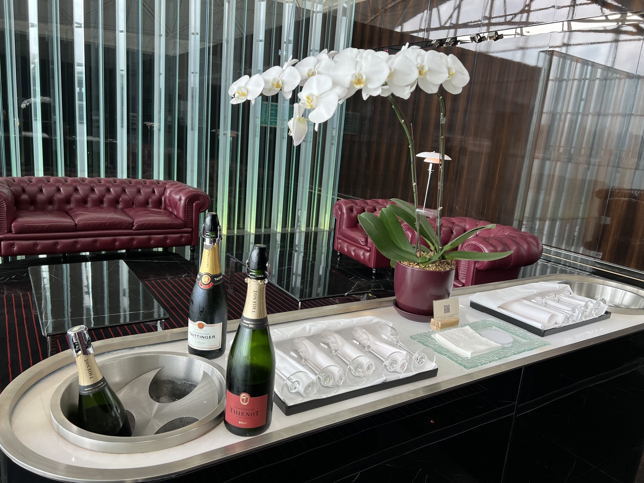 ファーストクラスラウンジはこのラウンジのみオープンしていました。残りは残念ながらクローズでした。食事はクオリティーが高く、ハンバーガーが美味しかったです。接客も丁寧で気持ちよく滞在できました。横長に広く、洗練された空間でした。