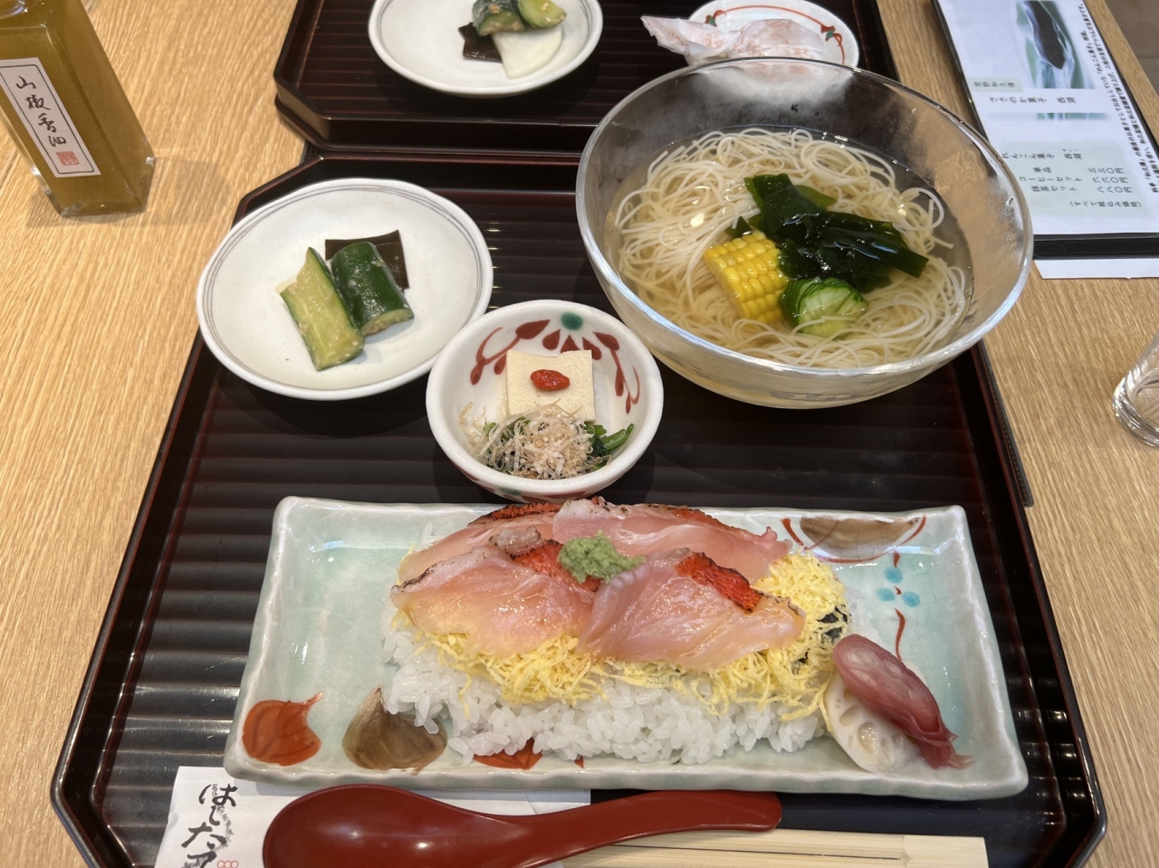 柚子ラーメンはあっさりしていて食べやすく、お寿司の中トロが美味しかったです。