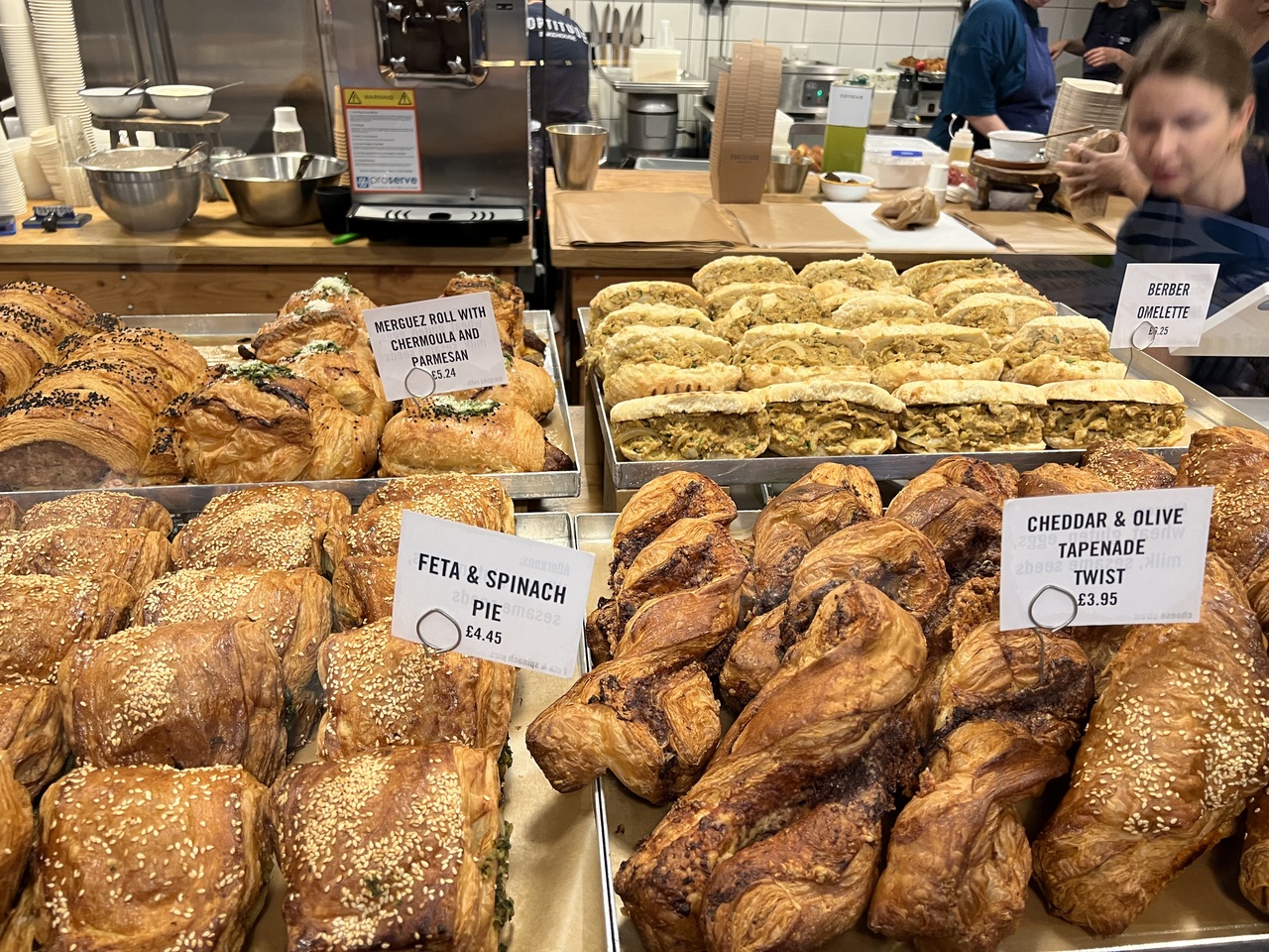平日は朝7時半からオープンしている美味しいパン屋さん。ピカデリーライン、ラッセルスクエア駅から徒歩1分。いつも行列で甘いパンから惣菜パンまで種類豊富です。店の前にはベンチがありその場で食事する人も多いです。デニッシュ系はサックサクの食感、シナモンロールはずっしり大きい。どのパンも食べ応えのある大きさが特徴です。ロンドンに行ったら再訪したいです。