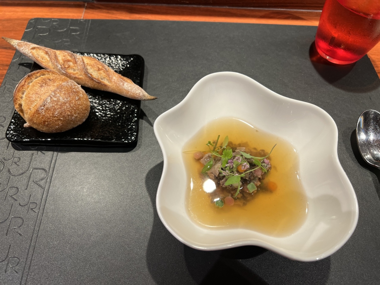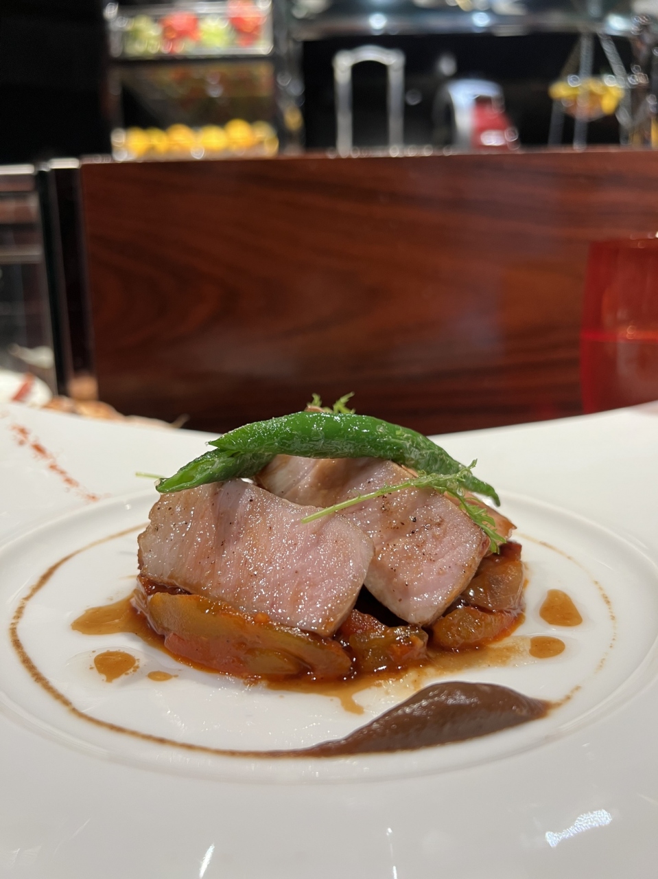 予約なしだった為、開店と同時に入店しました。お一人様ランチ利用。パンと豚肉のグリルが特に美味しかったです。デザートは美しいですが、甘さ強めでした。お腹いっぱいだったので、シャーベットなど軽めのものを頼めば更に楽しめたと思います。