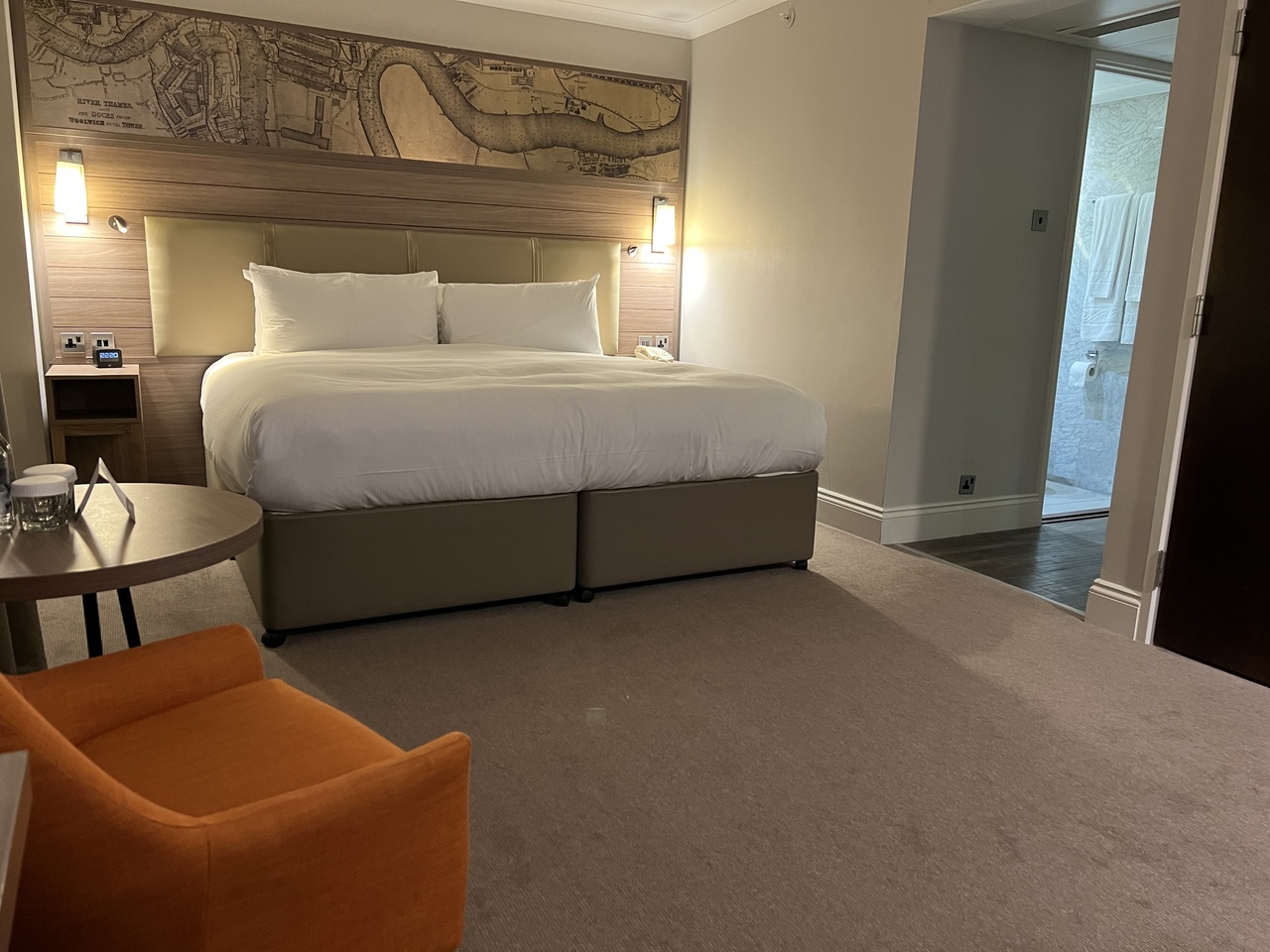 最寄り駅キャナリーウォーフまではヒルトンホテルから出ている無料の渡し船を渡り、地下鉄まで更に徒歩15分ですが、真っ直ぐビルの中を通ると近道。更に3分は時短可。渡し船は10分間隔で出港してますが、時刻表はアテになりません。バス停はホテルから徒歩1分で便利。早朝にバスで出掛け地下鉄で戻り、ホテルまで朝イチの8時40分の渡し船に乗船しようとしたら川沿いゲートの鍵が閉まっていて20分待ちぼうけ。海外あるあるです。(平日は6時半始発)部屋はとても広く、バスタブ有り、ミネラルウォーター、スリッパや分厚いガウン等アメニティは充実。朝食はオムレツが特に美味しかったです。夕食もホテルで食べましたが食欲なくて殆ど食べてないけれど味付けは可もなく不可もなく。中心地からは離れてますが部屋からテムズ川が見えて眺めが良いです。キャナリーウォーフは金融街なのでお店もたくさんあり買い物にも困りません。タワーブリッジまではバスで一本、比較的近いです。欠点は最寄り駅と中心地から離れてることでした。ホテルは清潔でスタッフもフレンドリーで良かったです。1人利用でしたが、部屋が広いのでトリプル利用でも充分な広さです。