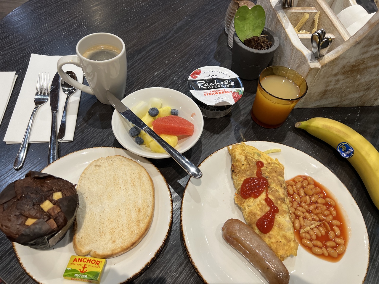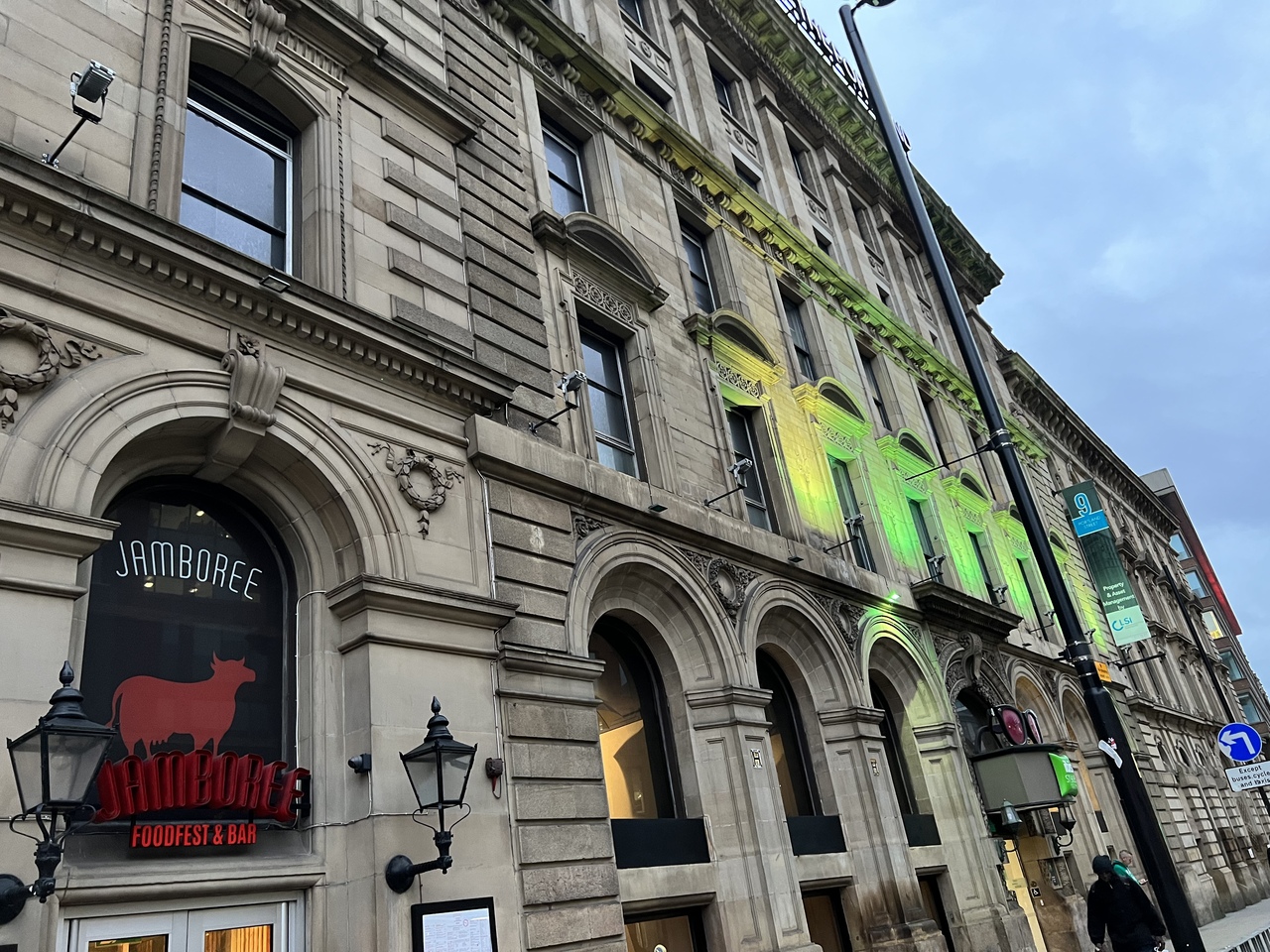 徒歩圏内にお店がたくさんあります。飲食やバル、M&S、スーパーが近くにあり買い物に便利。大通りに面している重厚な建物ですが、中へ入るとポップな感じです。雨の多いイギリスがコンセプトなのか傘の飾りがあり可愛い内装でした。部屋は狭いですが1人利用だと問題ない広さでした。特大のスーツケース広げても余裕があります。清潔でした。路面電車が走っていてビジネスマンがたくさん、大学も近くにあり街には活気がありました。治安もそれほど悪くないと思います。朝食のヨーグルトが特に美味しかったです。夕食はローストビーフが固くて大変でした。