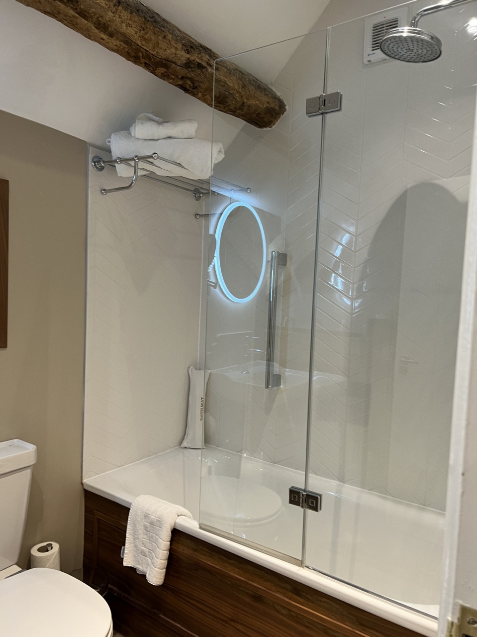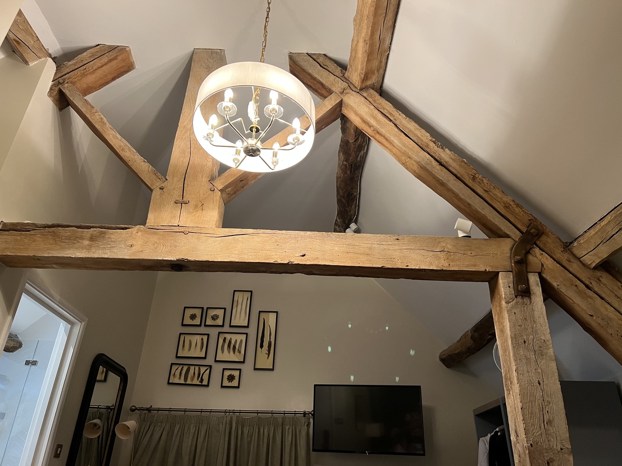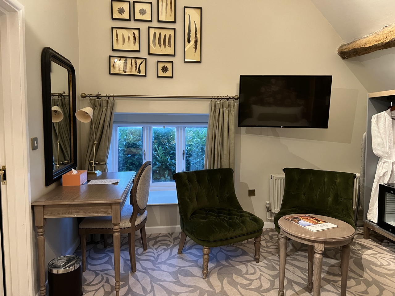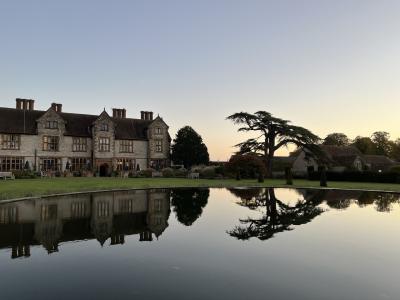 広大な敷地に佇むマナーハウスは歴史を感じる建物で、敷地内にはシェークスピアが結婚式を挙げたと言われている素朴な教会が森の中にあります。静かでイギリスの古き良き伝統や格式を感じ取ることができます。ホテルは本館と納屋に分かれていてチョイスできます。納屋は天井が高い三角屋根の古い木が剥き出しの趣きのある内装で歴史を実感できます。納屋の部屋は3回カードキーをかざして辿り着く仕組みで一階が玄関、中二階が専用のteaサービス、2階に部屋です。納屋にはスイートルームがありますが、普通の部屋と大きく違うのは眺望だけで部屋の広さや内装は殆ど変わりません。本館は部屋によっては普通の四角い天井の部屋もあります。朝食はウインナーと薄いイギリスパンがサクサクで美味しかったです。夕食はトマトのスープが美味しかった。メイン、デザートと全体量が多かった。羊がたくさん放牧されていて朝は小鳥の囀りを聞きながら散歩、夜は満点の星空。自然豊かな場所でゆっくり静かに過ごすには最高です。スタッフは少し日本語が話せるみたいでフレンドリーで親切です。一度は泊まりたいホテルだと思いました。