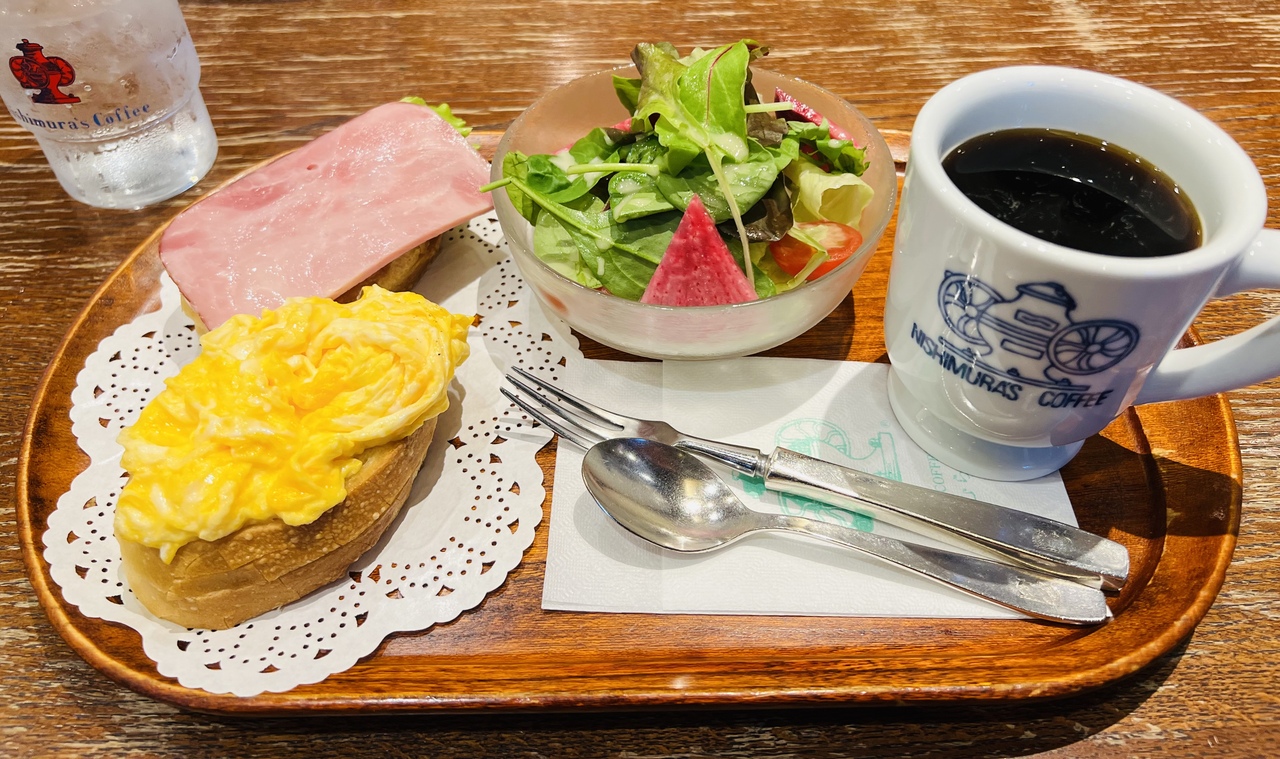 モーニングはフルーツセットの方が人気でしたが、野菜が食べたくてサラダセットを注文。パンの上にスクランブルエッグとハムの王道メニュー。とても美味しかったです。店内は広く落ち着いた雰囲気で、気持ちの良い接客が印象的でした。三宮からは少し歩きますが近くに来たらまたモーニング食べに行きたいと思いました。