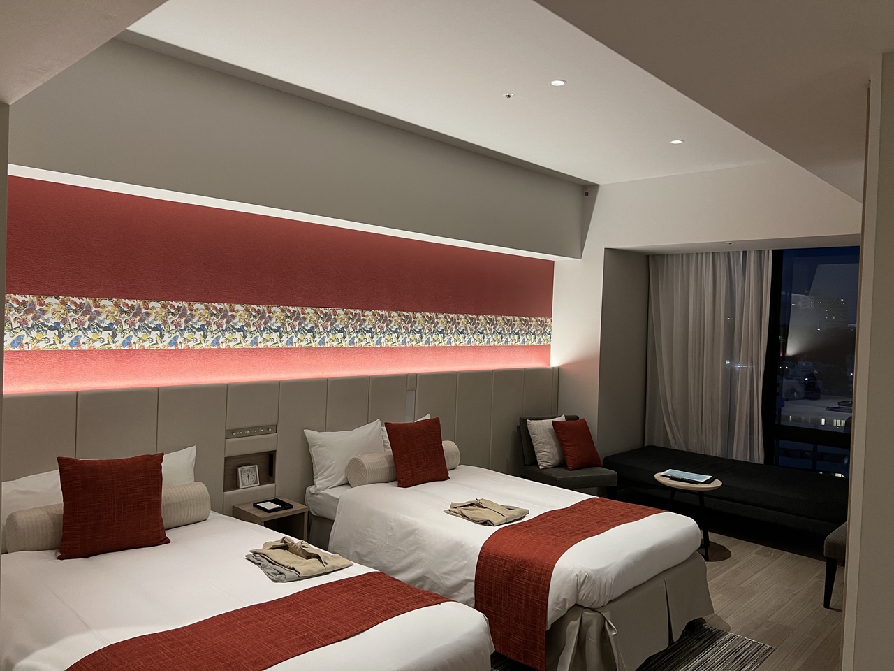 古いホテルですが室内が広く、スーツケースを広げて狭く感じない所が良かったです。温浴施設が充実してるのでシーズンオフでも楽しめると思います。露天風呂が特に良かったです。朝食はバイキングでした。残波岬までは歩いて行けます。