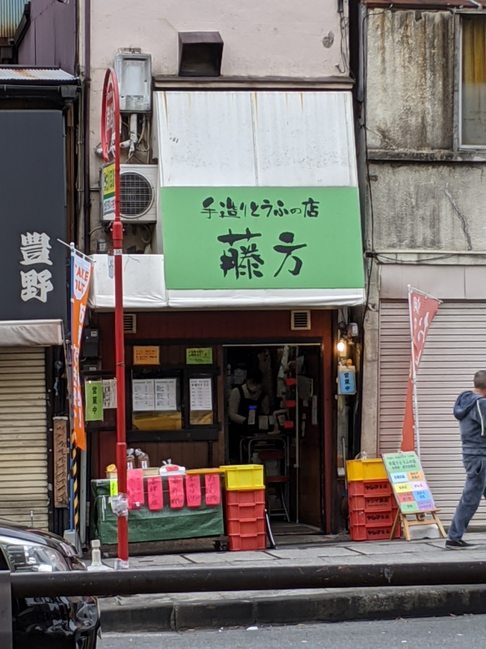 横浜橋商店街入口にある(ラーメン屋さんの隣、間口狭いので要注意)、美味いできたて豆腐が買えるお店です!