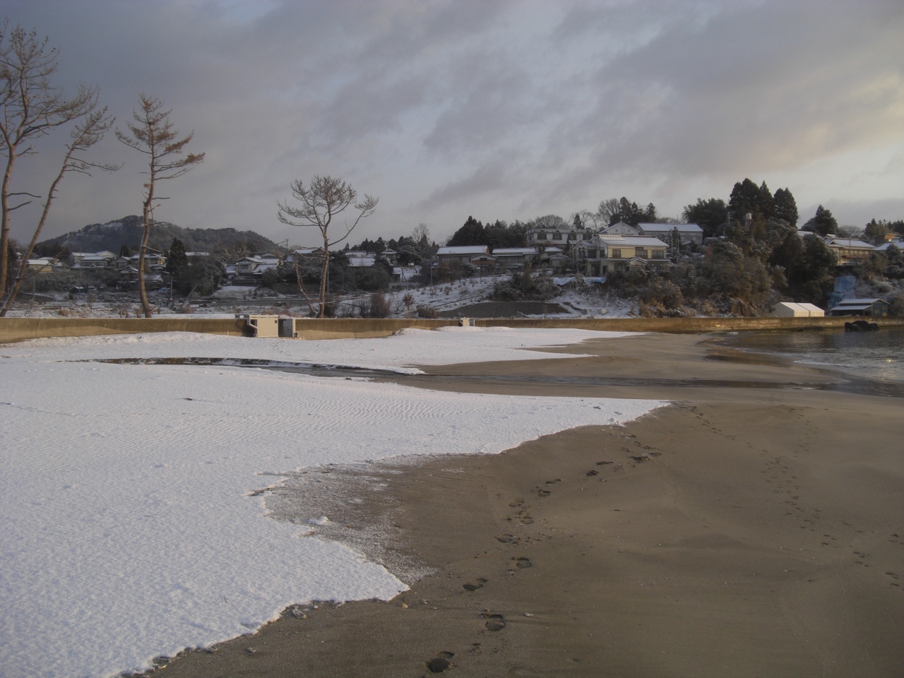 小田の浜海水浴場の浜の前、高台に再建し営業を再開。