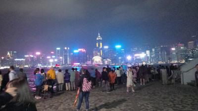 九龍島から香港島のビル群にレーザー光線でライトアップされて、光の祭典が始まります!