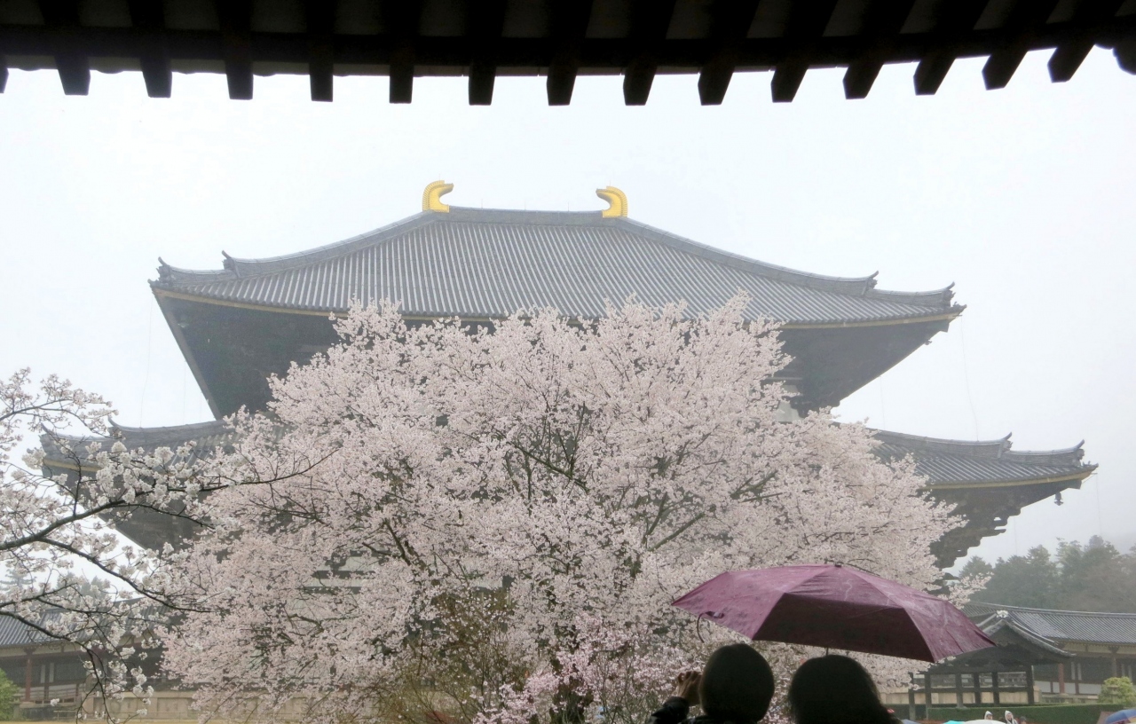桜の中に本堂や五重の塔が見え隠れしている感じが、美しく、