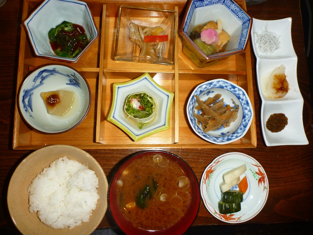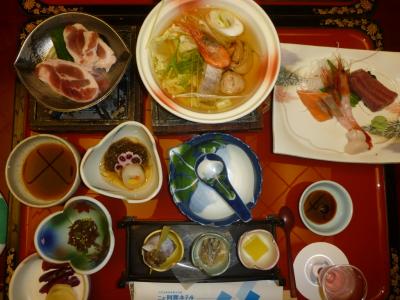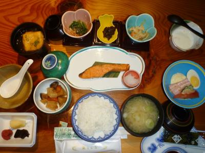 夕食もカニが1杯付いてそれなりでしたが、朝食は郷土料理を中心に結構な品揃え。ダイビングの予定がなければ、日本酒を2~3合嗜みたいところ。
