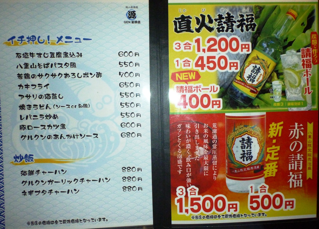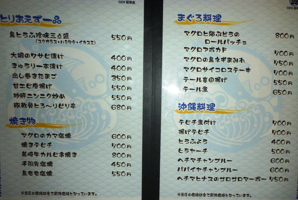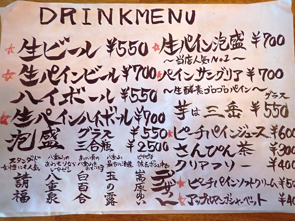 水産会社が経営する居酒屋ということで海鮮系がメインかと思っていましたが、魚介から石垣牛まで、迷うくらいメニューが多彩でした。良く言えばオールマイティー、悪く言えば総花的なお店。ひとつのお店でいろいろな種類の料理を味わいたい系の方には最適では!