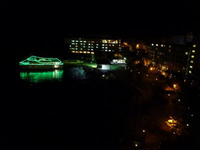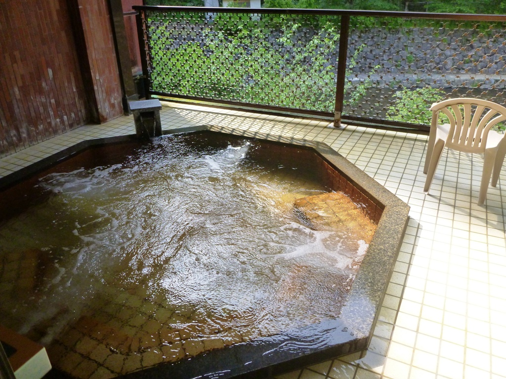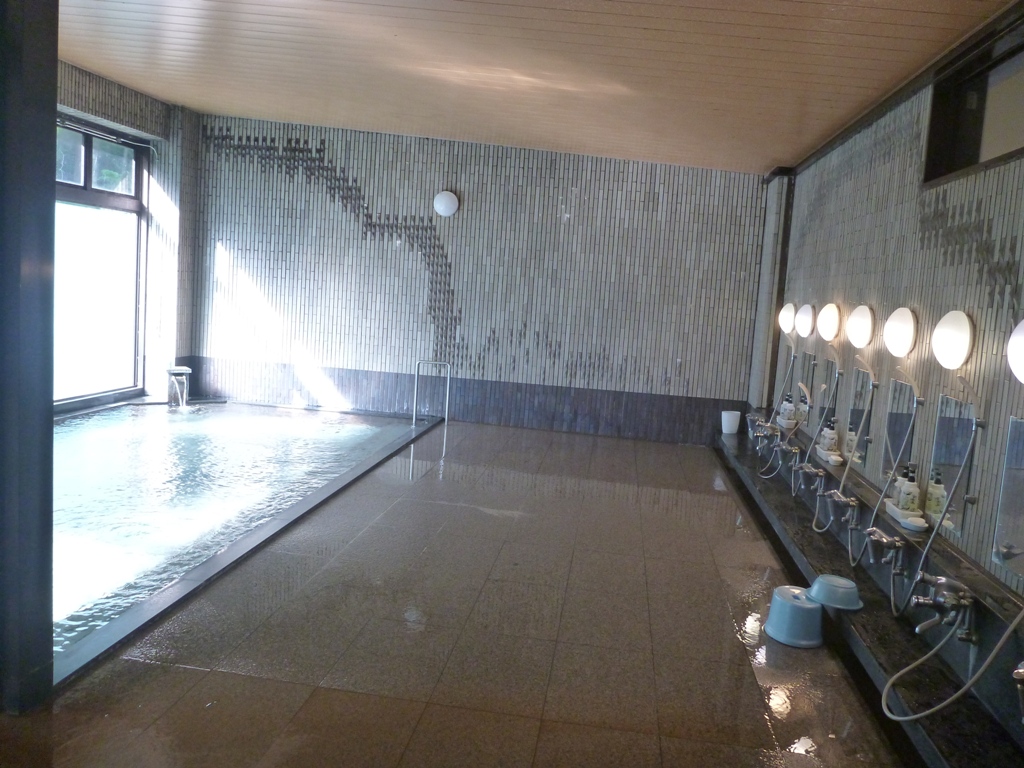 この日は、北小浦までコブダイに会いに行っていたので、18時過ぎの遅めのチェックイン。夕食が19時スタートとかで、19時30分スタートに変更をお願いしてみましたが、オーダーストップの時間などから無理だったみたい。ダイビングで冷えた体を夕食前に温泉でゆっくりと温めって、おいしいビールを飲みたかったんですが、残念。それでも、執念でザッブとだけは夕食前に入浴!