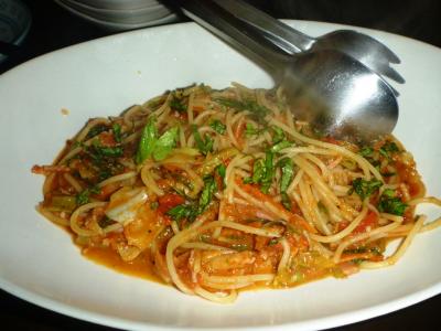 また、この店は、島のパイン農園をやってる方の経営だとか。そのせいでメニューにパイン関係の料理がたくさんあります。中にはパインチャーハンなんていうのもあります。それ以上に、農園経営者ということから、素材には相当のこだわりがあるようです。牛にしても、石垣牛ならぬ西表牛、それも生産者明記!