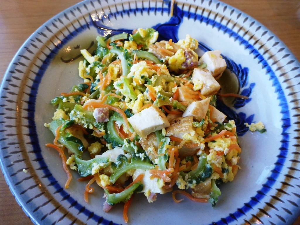 ゴーヤチャンプルとメニューにはない泡盛を注文して、マッタリと小一時間過ごしました。- 旅行時期