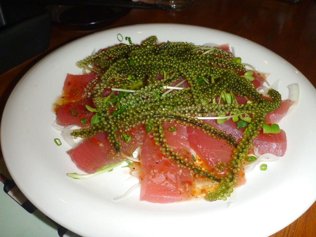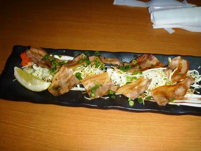 グリル居酒屋と銘打っいる店だけあって、離島ではめずらしく、海鮮ではなく火を通した料理がメインのお店です。なので、泡盛よりワインが合いそうな料理がたくさんあっって、ワインの品揃えもそれなりでした。しかし「久米島へ来てまで、ワインはどうなの?」みたいな意見もあって、結局、飲み物は泡盛にしました。