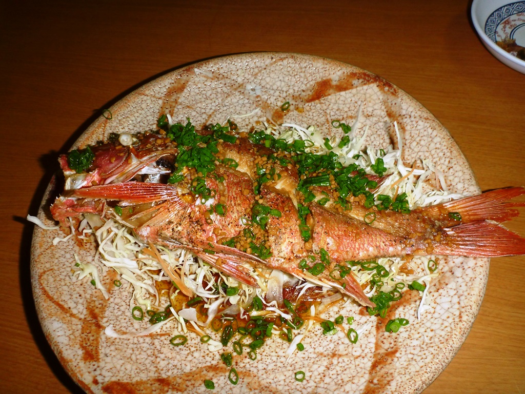 海鮮・中華系のほかに、沖縄料理や寿司などメニューはとても豊富です。ヤギ刺しなんかもありましたよ。自分たちのメンバーは、鮮魚系はあまり得意ではないので、海鮮系以外を中心にオーダーしましたが、どれもおいしくいただけました。表紙の「島魚の特製ソースかけ」は、中華風の仕上げで、特に印象に残っています。