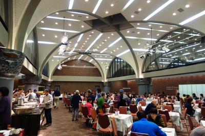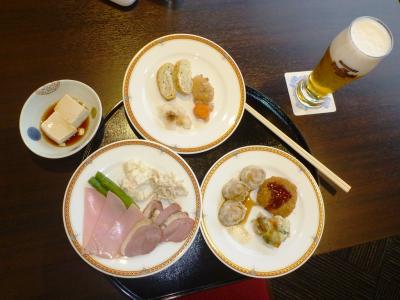 夕食も朝食もメインバンケットホールでブッフェスタイルでいただきました。夕食、朝食とも料理の種類がけっこう豊富で、十分楽しめました。また、夕食時には、飲み放題1,800円/90分が呑兵衛さんにはオススメ。単品だと生ビールが一杯800円なので、すぐに元はとれると思います。ビールのほか焼酎、ワイン、ウィスキーなどが飲めますが、冷酒はさすがにNGでした。