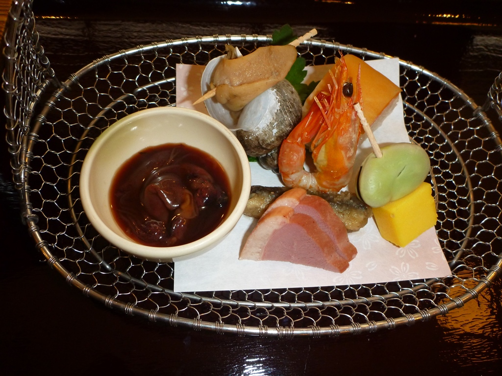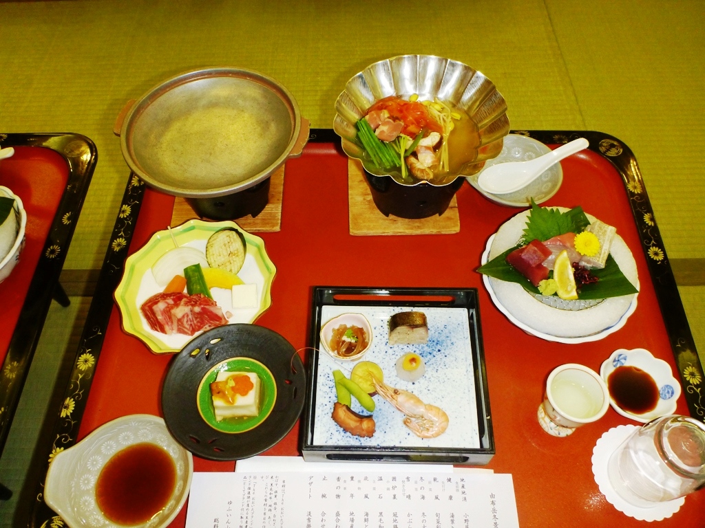 食事には力を入れている宿だとの評判を聞いていたし、幹事さんからも食事は上から2番目のプランにしておいたとのことだったので、期待していました。富山湾の3大名物、白海老xブリx蟹+牛ヒレの石焼をセットにしたプランで、料理のバランスも良く、どれもおいしくいただきました。