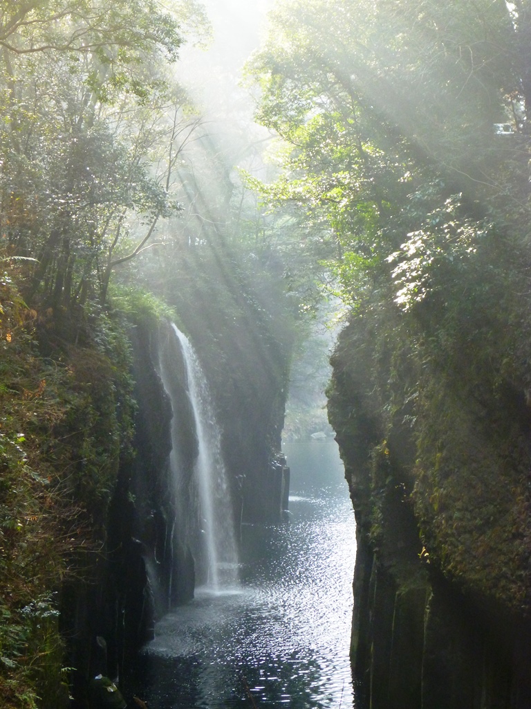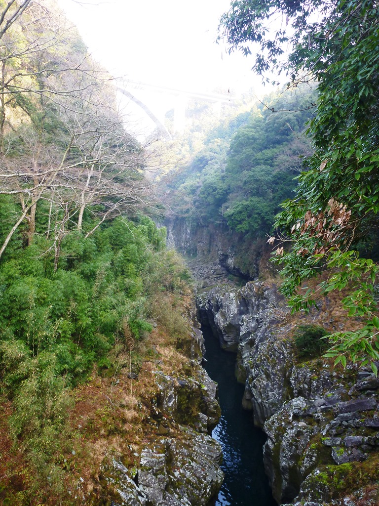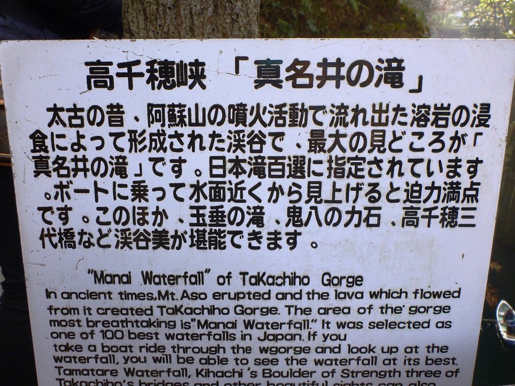 高千穂大橋あたりでバスを降りて、真内井の滝を経由して御橋まで歩きました。ゆっくり歩いて20分くらい。ずーと下りなので、天気さえよければ楽なコースです。でも、ずーと下りなだけに、雨が降って足元が滑るようなコンディションだったら、ちょっと怖いかも。