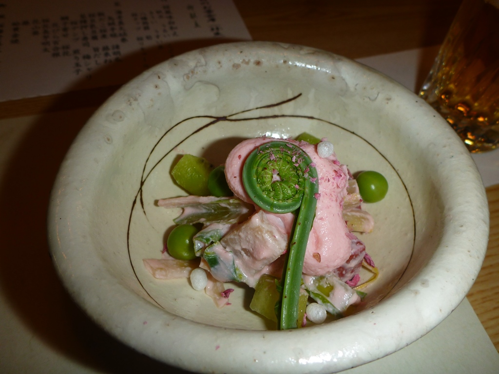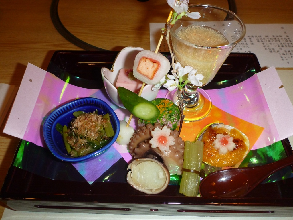 3月中旬ということもあってか、桜がテーマの料理でした。桜のリキュールが和食にマッチしているかどうかは、ちょっと微妙でしたが、板前さんの感性が伝わってくるような料理でした。