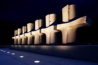 実は、大成浩氏制作のモニュメントが私の街“魚津”にもあります。「風の地平線―蜃気楼」と言います。6年がかりで作成されたこの作品は、7本の石柱が並び、幅14mにも及びます。海の駅しんきろう前の広場に平成21年3月に設置されました。- 旅行時期