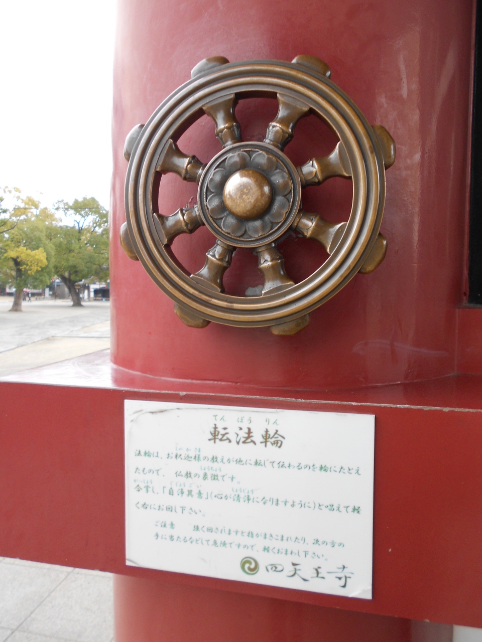 鳥居を抜けると極楽門があります。門の壁に転法輪なるものがあるので、注意書を読み、回してみてください。