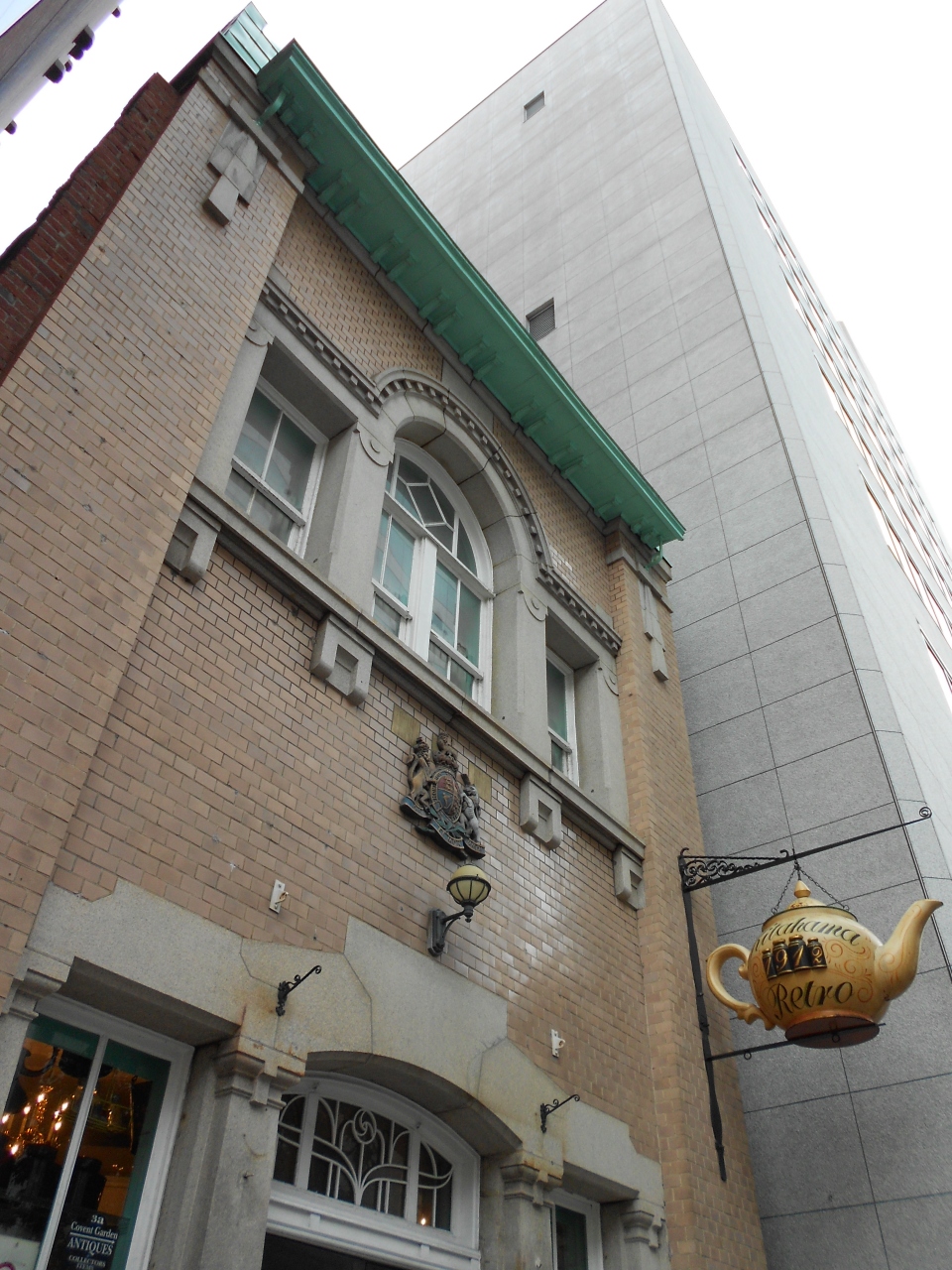 北浜駅からすぐ。近代的なビルの間にあります。壁に掛かった大きなティーポットが目印。店内もレトロ調でかわいかったです。