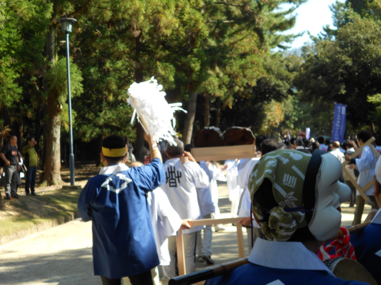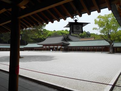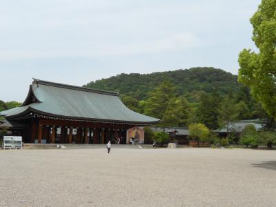 鳥居をくぐり進んでい行くと、応天門があります。そこをくぐるとだだっ広い広場?があり、その向こう側が本殿です。