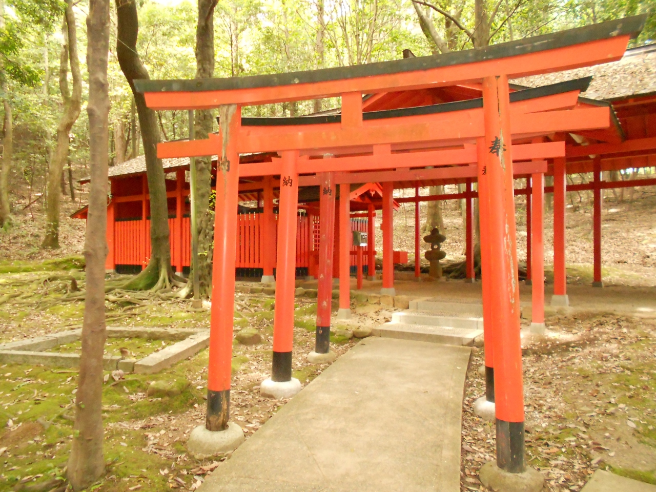 大きな朱色の鳥居が目印です。近隣には、美術館や図書館、公園があります。