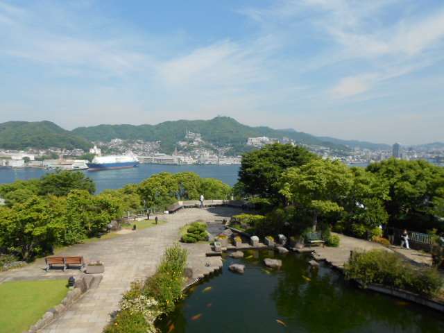 ドックハウスからは長崎の町を見渡せ、海と空の青、庭園と山の緑が映え素晴らしかったです。