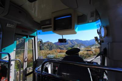 高原バスに乗り換え室堂駅を目指します、途中の景色も素晴らしく紅葉する木...