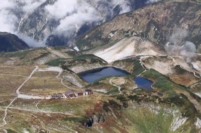 登山途中から室堂展望、みくりが池や今夜宿泊の立山ホテルが眼下に広がりま...
