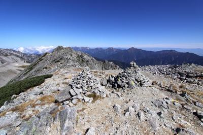 立山山頂、槍ヶ岳や剱岳がほぼ水平に見えます、ここまではキツかったけどこ...