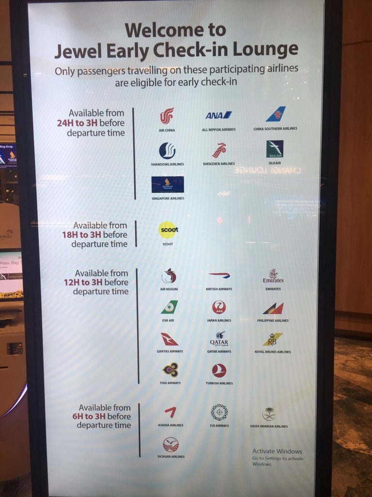 巨大な滝と森、ショッピングモールの印象が強いジュエルですが、二四時間空港のチャンギエアポートで便利なアリーチェックインのカウンターがあります。