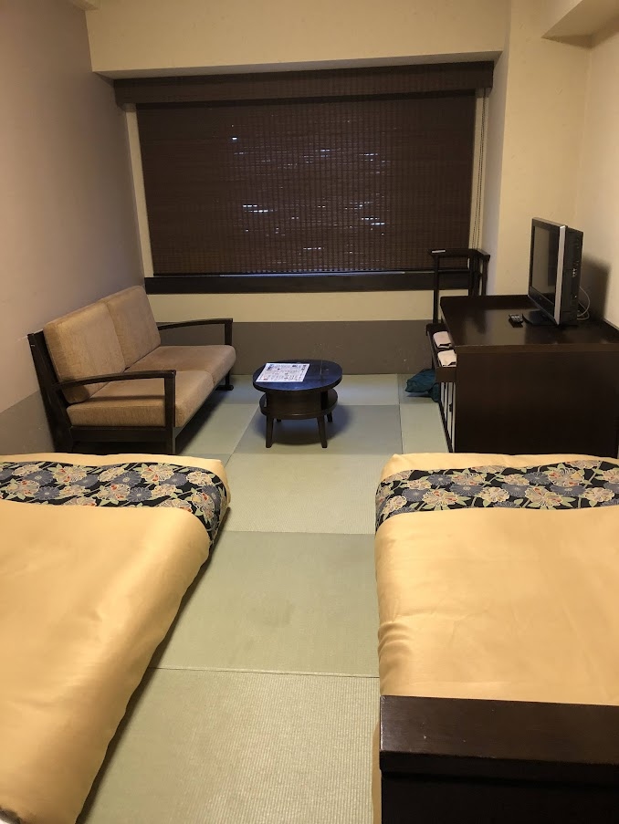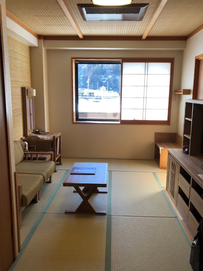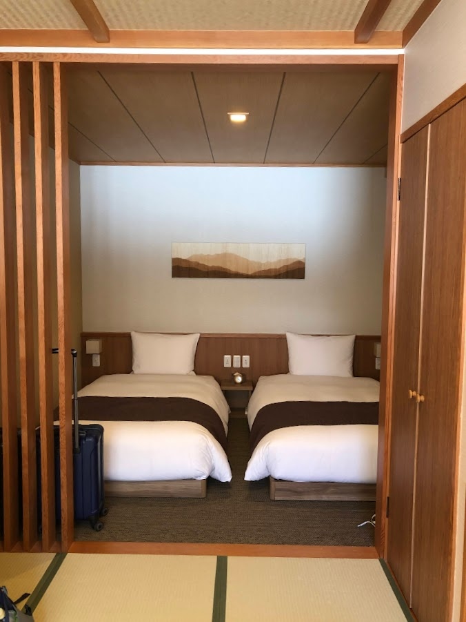 館内は畳敷きのなっており靴下か裸足で移動。アメニティに足袋風靴下があります。