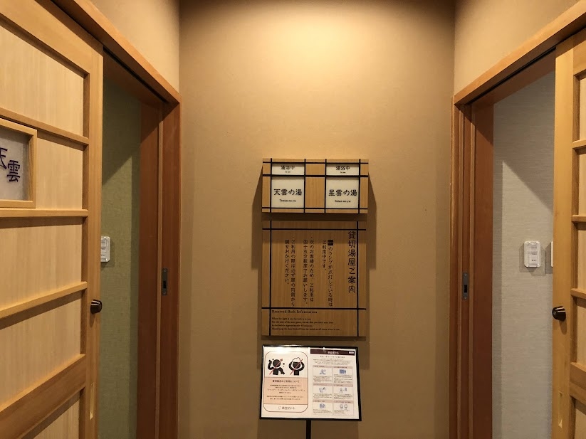貸し切り露天風呂は入り口のランプが消えていれば空いています。(無料)
