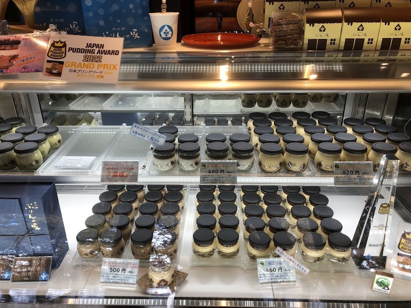 定番のプリンの他に、苺などの期間限定のプリンからご当地名物五平餅味のプリンなど7.8種類あり観光地プリンでは種類が多い方ではないでしょうか。