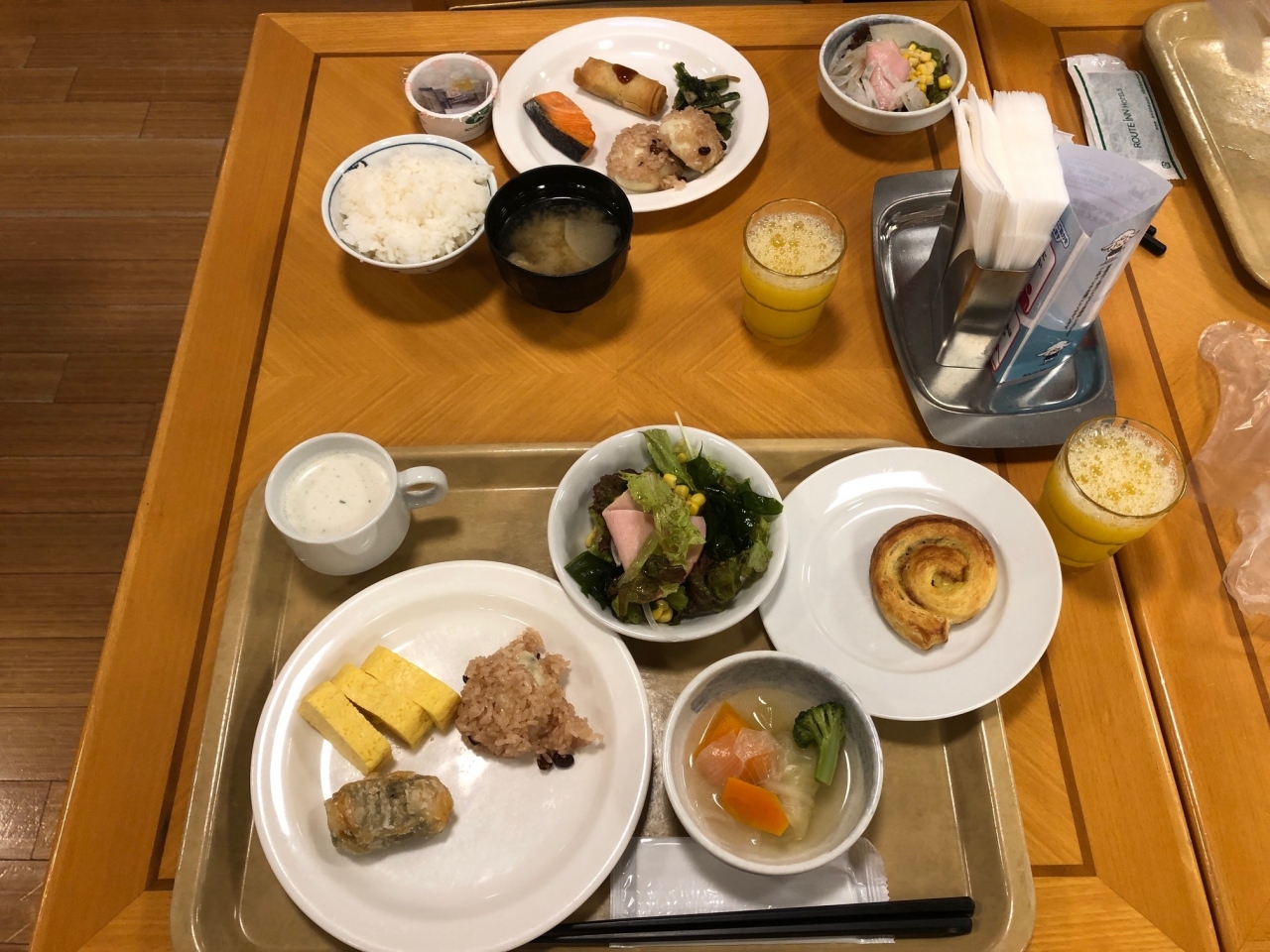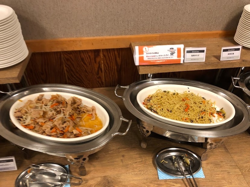 朝食ブッフェにご当地名物のほうとううどんと鶏もつ煮があったのも嬉しかったです。
