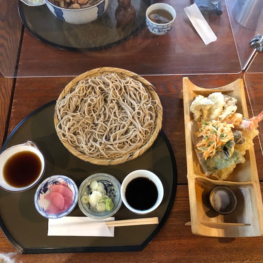 真冬でも古民家の店内は暖房で暖かったので、私は冷たい季節の天ざる蕎麦を頂きました。