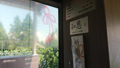 新しいドーミーインなので施設も綺麗で、部屋の中の引き戸には武田の紋があったり、姿見鏡には葡萄の絵が彫ってあったりと遊び心もチラホラと見受けられました。