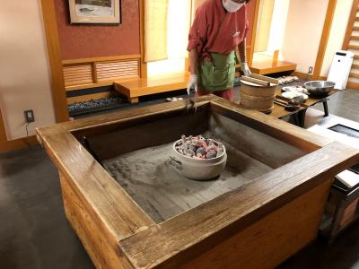 名物「磯焼き」付きのコースを予約。実演で焼いた石を使って作る、アラ汁の様なお味噌汁はイベント感があり楽しかったです。後程、各部屋に出来上がった物を持って来てくれます。
