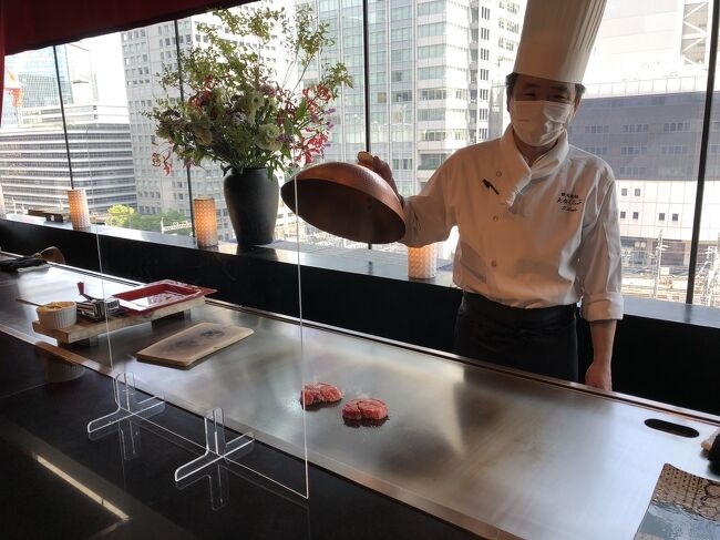 カウンター席からは東京駅のホームと八重洲のビル群が望めますが、静かな店内は外の喧噪からかけ離れ、完璧なサービスでゆったりとした時間が流れています。
