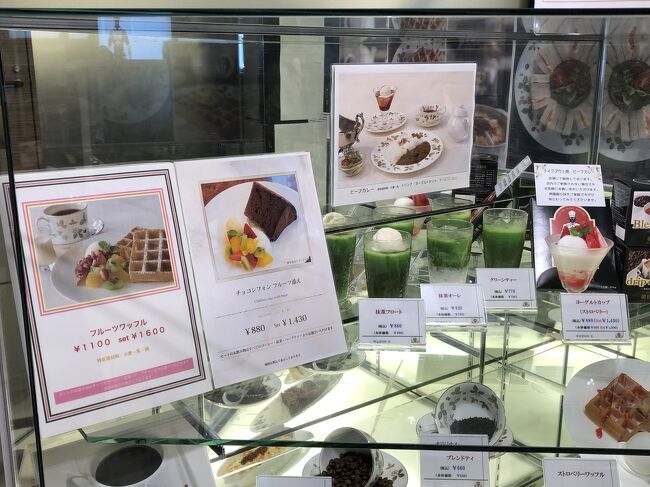 ワッフルやシフォンケーキなどのスイーツも綺麗に盛り付けられて、飲み物とセットで頂くとお手頃なお値段になります。