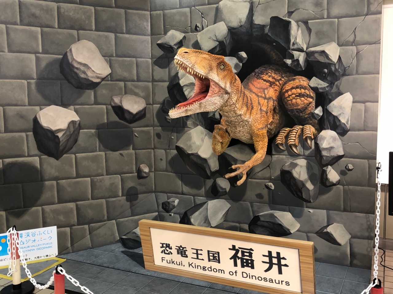 到着ロビー(1階)では恐竜たちがお出迎え。